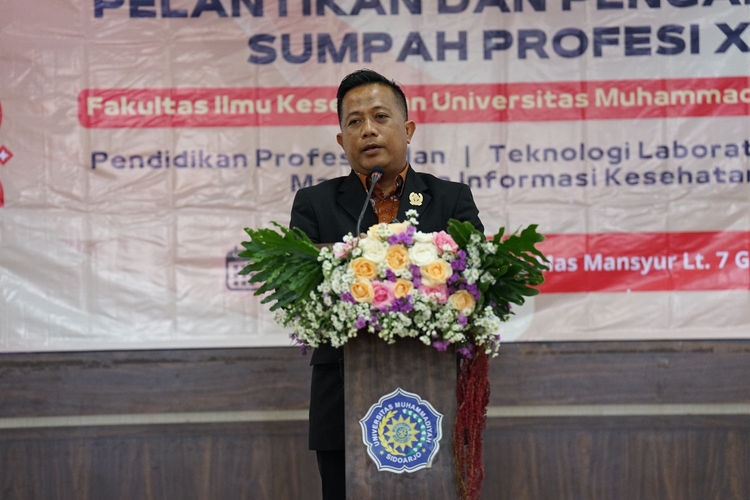 Rektor Umsida Dr Hidayatulloh MSi dalam sambutannya menegaskan bahwa sumpah profesi merupakan fondasi tanggung jawab moral dan profesional lulusan sebagai tenaga kesehatan.